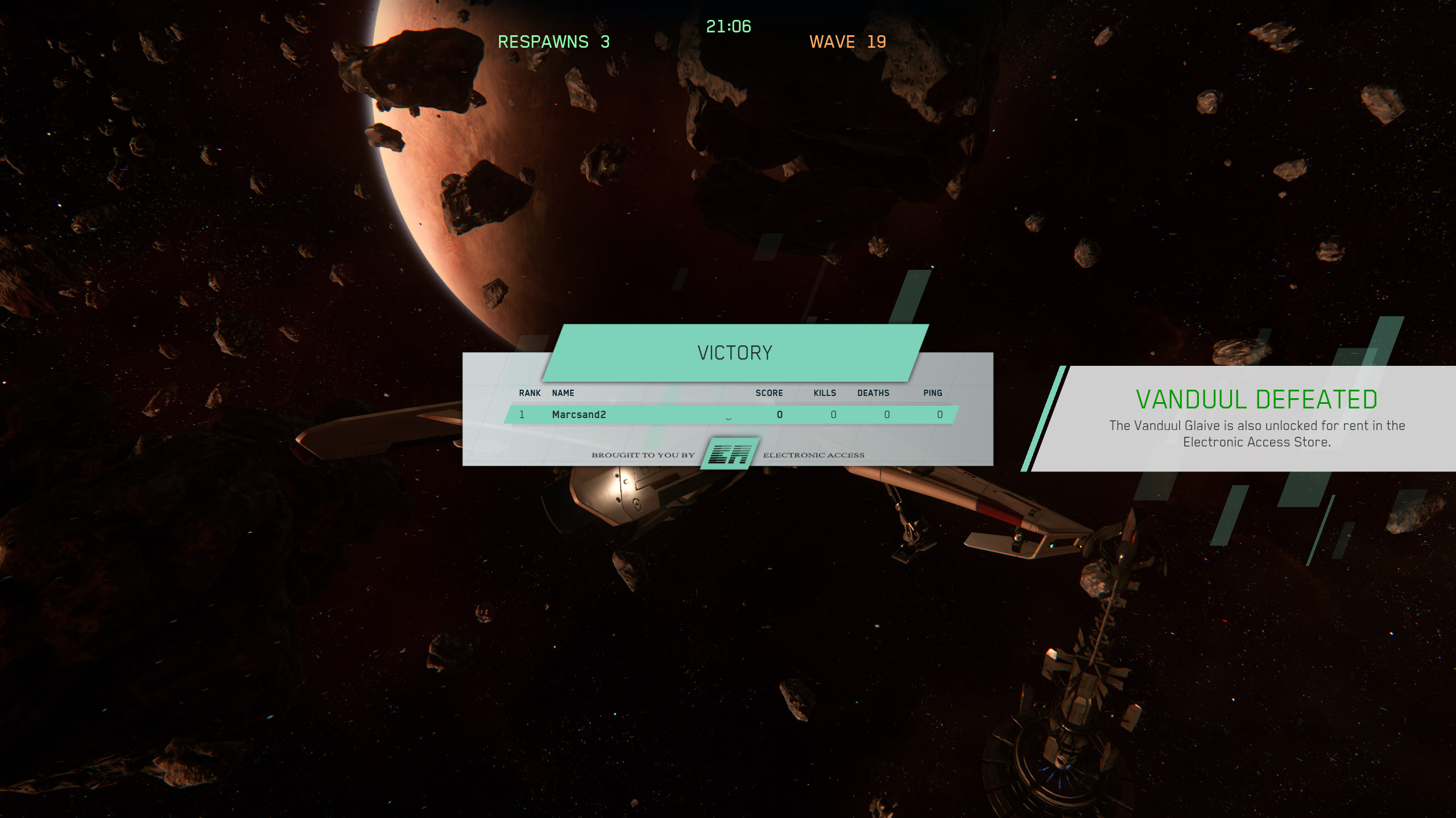 Luckily for me every wave of Vanduul self destructed on spawn so I only had to wait until wave 18... That is almost 20 minutes for the first 2 waves :grin: