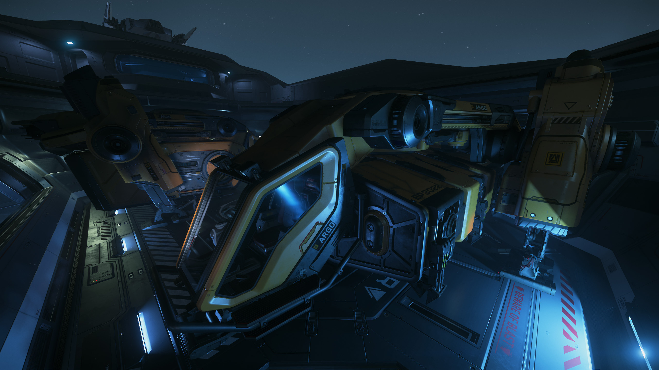 First pic taken at Levski, second on Yela. Both little orange bots survive jumps with the hangar closed without any problems.the real test is will the hangar deck lid close without touching them?