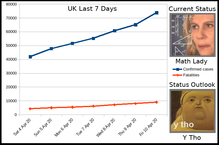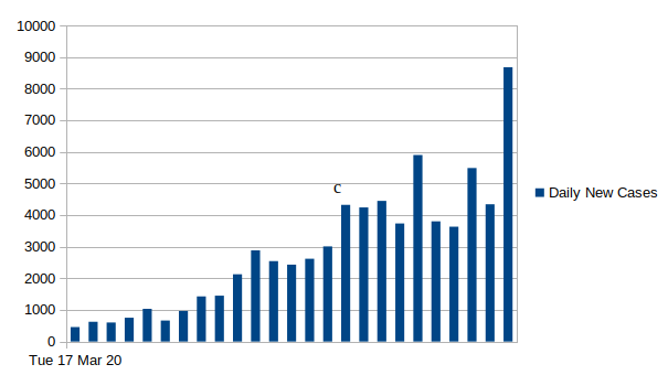 None of it matches up very well, so I'll still be using the total confirmed as my point of reference giving a contradictory 8681 new cases rather than the official 5,706: