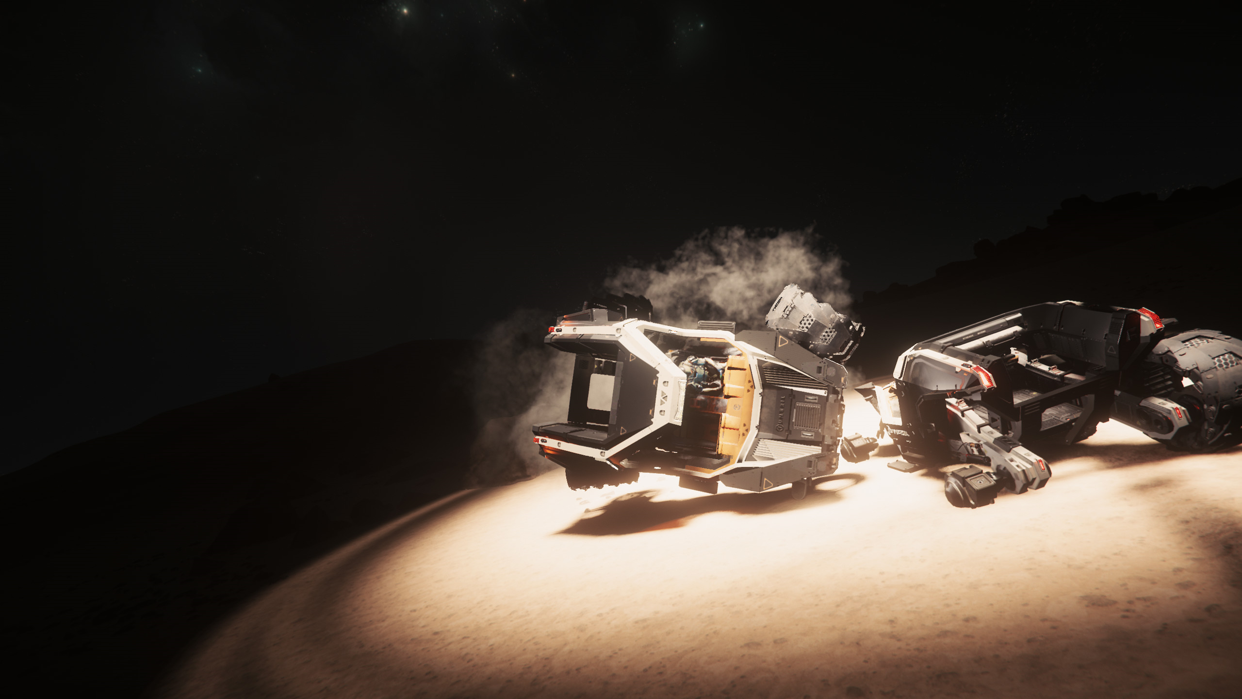 Actually Cauac was turning around on his side, not able to get back on his wheels (the ones that still were present). We tried to fix that. As you can see, we succeeded.
