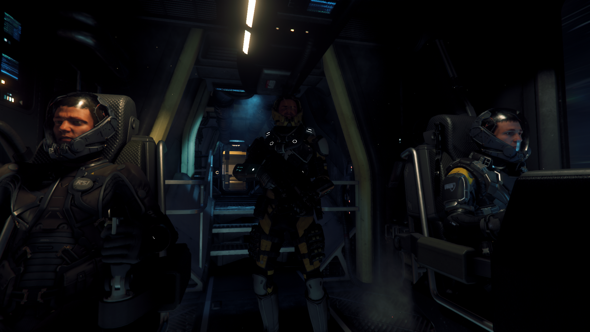 I didn't get many screenshots from tonight but I did get this one that I really like from the cockpit of the Reclaimer. I'm on guard duty, @Black Sunder is in the pilot seat and @Joao611 is sitting right seat. Should be some more screenshots coming up soon from others.