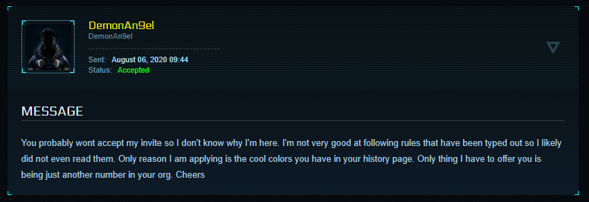 My 1st thoughts are that this candidate is clearly meant to work on a Cap ship thanks to his realization that Capital letters are easier to read while intoxicated. Then I figured that he got drunk before joining so that even in applying, he was already "One of us!" Cheers!