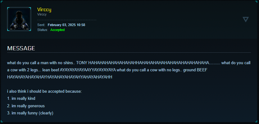 She is more cynical than I am about their chances of ever getting it to a polished and playable state. She barely tolerates when WoW has bugs. I can't even imagine how she would react to all the bugs SC has...